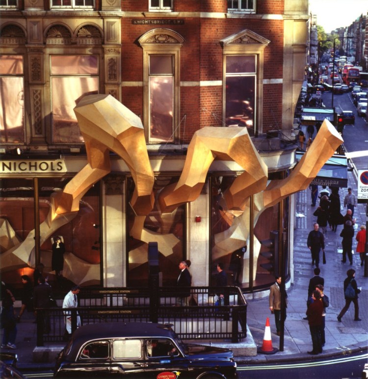 El edificio de los almacenes Harvey Nichols, con fecha 1880, se viste de otoño por mano del estudio Heatherwick.