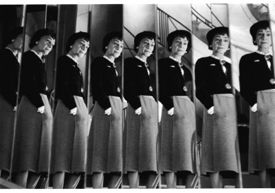 Coco Chanel retratada por Doisneau delante de los espejos de su atelier, donde el espacio se fragmenta y multiplica.