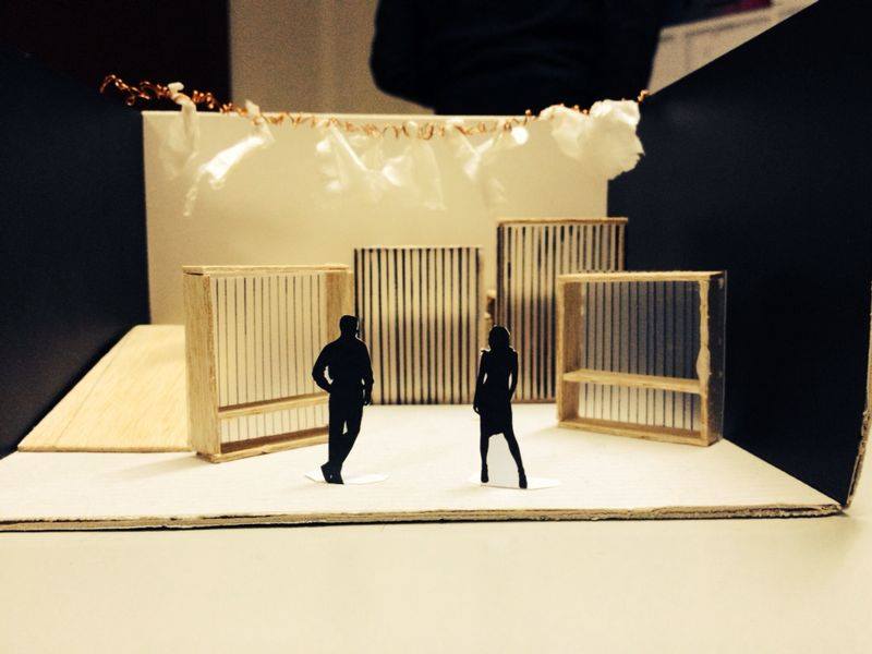 El camino fue arduo y lleno de dudas por el desconocimiento que teníamos en ese área. Sin embargo, tras muchas horas de trabajo e investigación, llegamos a establecer el concepto de “Opresión”, el cual nos ha guiado durante todo el desarrollo del proyecto. Basándonos en este concepto realizamos una maqueta que nos ayudó a visualizar lo que sería nuestra escenografía.