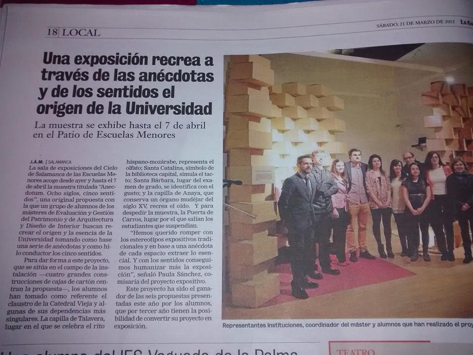 Buenos Días, os pasamos los enlaces y recortes de prensa que hablan de nuestros Diseñadores y Gestores y su exposición.